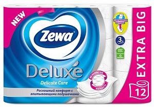 Туалетная бумага трёхслойная Белая с тиснением Deluxe, Zewa 12 рулонов
