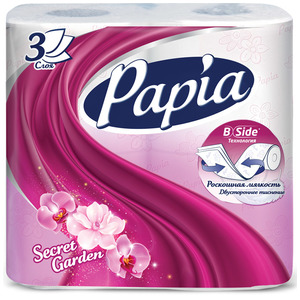 Туалетная бумага трёхслойная Secret Garden, Papia 4 рулона